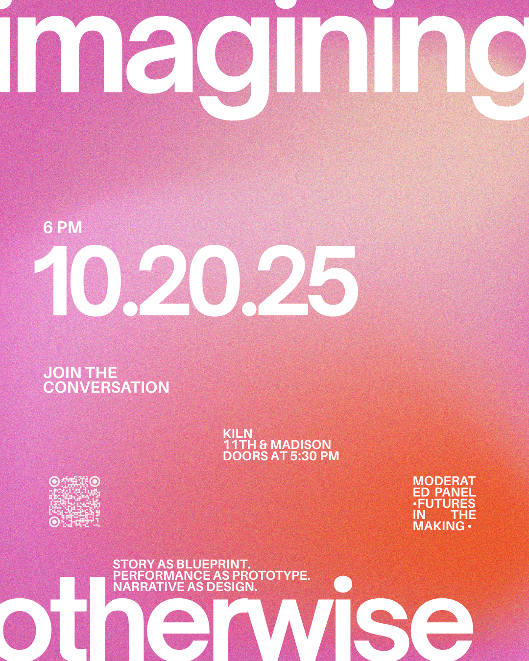 Imagining Otherwise: Storytelling, Design & Speculative Imagination - A multidisciplinary panel bringing together artists, designers, and changemakers to explore narrative as a civic and cultural design tool. Learn more and register